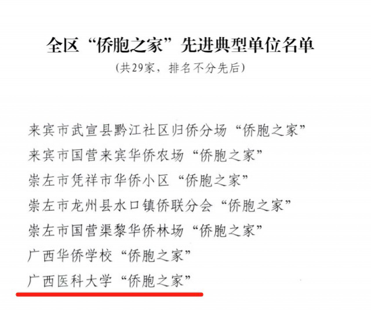 据悉,自治区侨联此次共表彰30个“全区侨联系统先进组织”,表彰29个自治区“侨胞之家”先进典型单位。我校是唯一同时荣获两项集体荣誉的高校。下一步,我校侨联将在学校党委的领导下,聚焦保持和增强政治性、先进性、群众性,继续围绕中心、服务大局、服务侨胞,广泛团结凝聚广大归侨侨眷,为谱写中国式现代化广西篇章做出新的更大贡献。