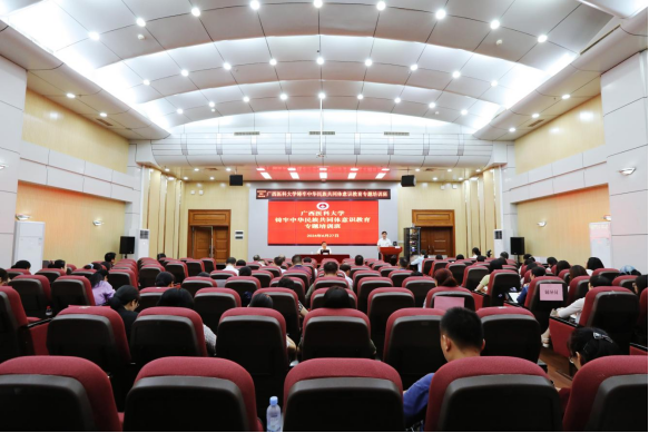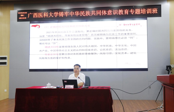 此次培训邀请了广西社会主义学院何文钜教授作专题授课。全面系统学习贯彻习近平总书记关于铸牢中华民族共同体意识的重要论述,从理论与实践相结合的角度深入分析了高校如何做好铸牢中华民族共同体意识教育工作。