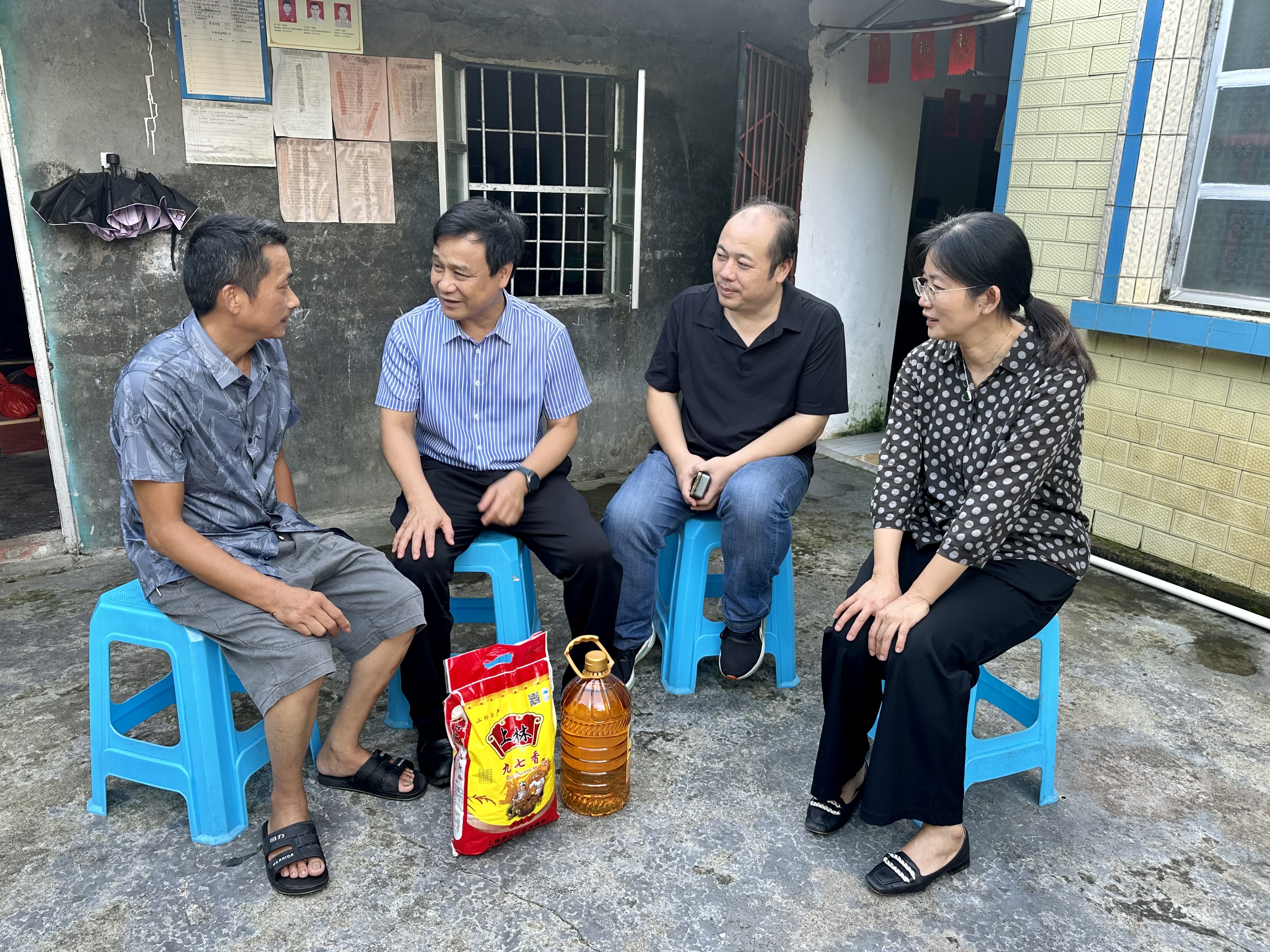 7月4日下午,队伍一行来到我校知联会的定点联建村东兴市东兴镇竹山村,与防城港市委统战部、竹山村委会召开了调研座谈会,了解竹山村经济社会发展和人才资源等相关情况,并就下一步如何有效开展结对帮扶做了深入探讨。随后,队伍一行分3组开展活动。以医学专家组成的医疗小组深入村庄开展送医下乡活动,通过义诊为村民提供专业、科学、实用的健康指导;以我校知联会代表组成的慰问小组前往8户联建户家中进行慰问调研,关怀倾听他们的实际需求和意见建议;入户义诊小组走进农户家中,给卧病在床的村民进行慢病问诊,详细了解他们的健康、起居生活等基本情况。