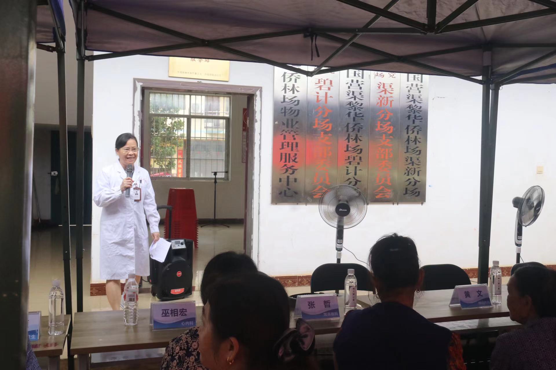 在我校侨联主席黄文的带领下,专家们首先来到了渠黎华侨林场职工文化活动中心,并向到场的群众介绍了国家对于口腔医疗服务的支持政策、心绞痛的识别方法、肿瘤筛查的相关检测项目以及老年痴呆症的早期症状及其应对策略。随后,专家团队为林场的居民进行了详细的健康检查,并耐心解答关于各种常见疾病的问题。