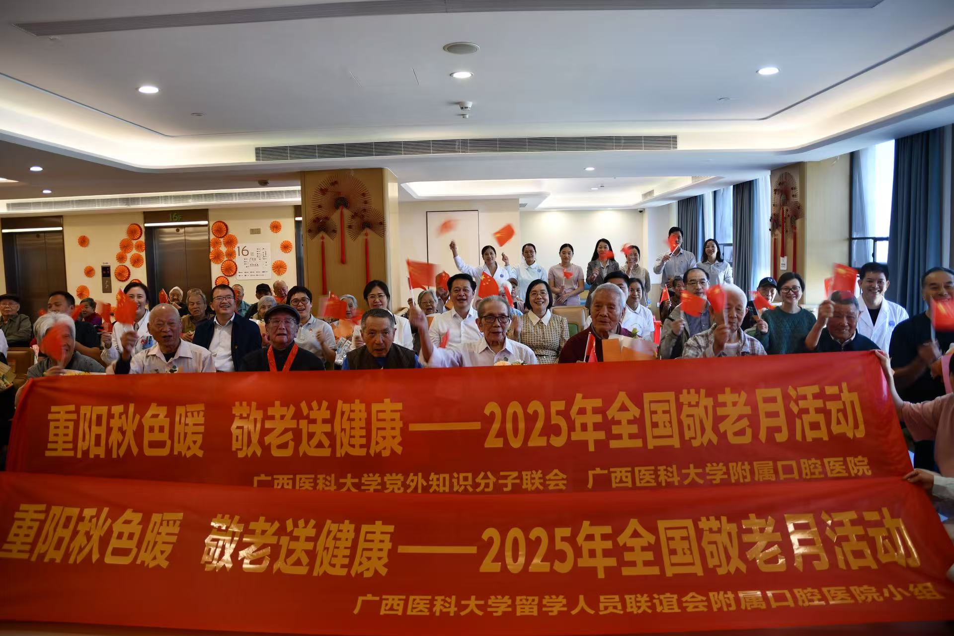 10月27日下午,我校知联会走进南宁悦年华颐养社区,举办了一场温馨祥和的重阳节敬老爱老主题活动。我校知联会会长、附属口腔医院院长廖红兵,知联会副会长、全科医学院副院长左延莉及各附属医院分会成员、留联会口腔医院小组成员共计10余人参加了活动。