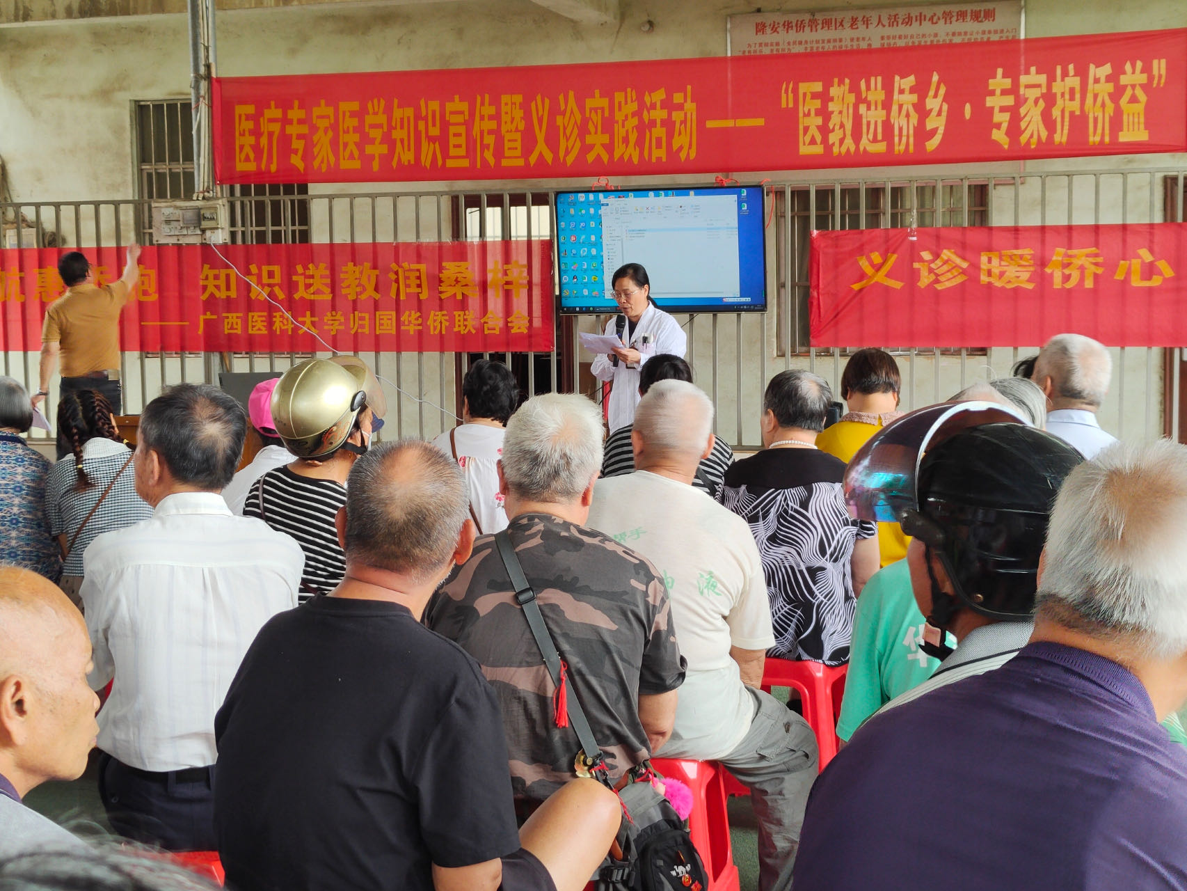 近日,我校侨联携手隆安县侨联走进广西浪湾华侨农场开展了一场温暖人心的“医教进侨乡·专家护侨益”服务活动。我校附属医院神经内科、口腔科、内分泌科、药学部等科室的归侨侨眷代表共计10余人参加了活动。